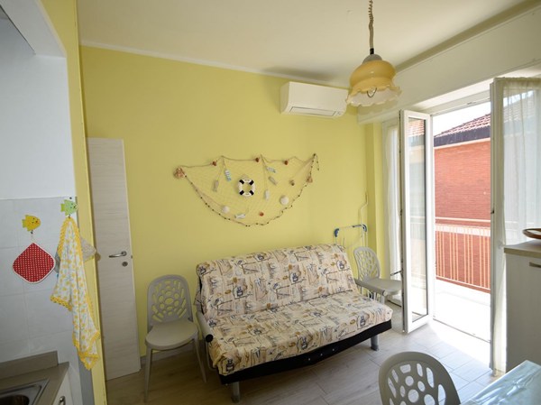 Soggiorno con divano letto e angolo cottura,